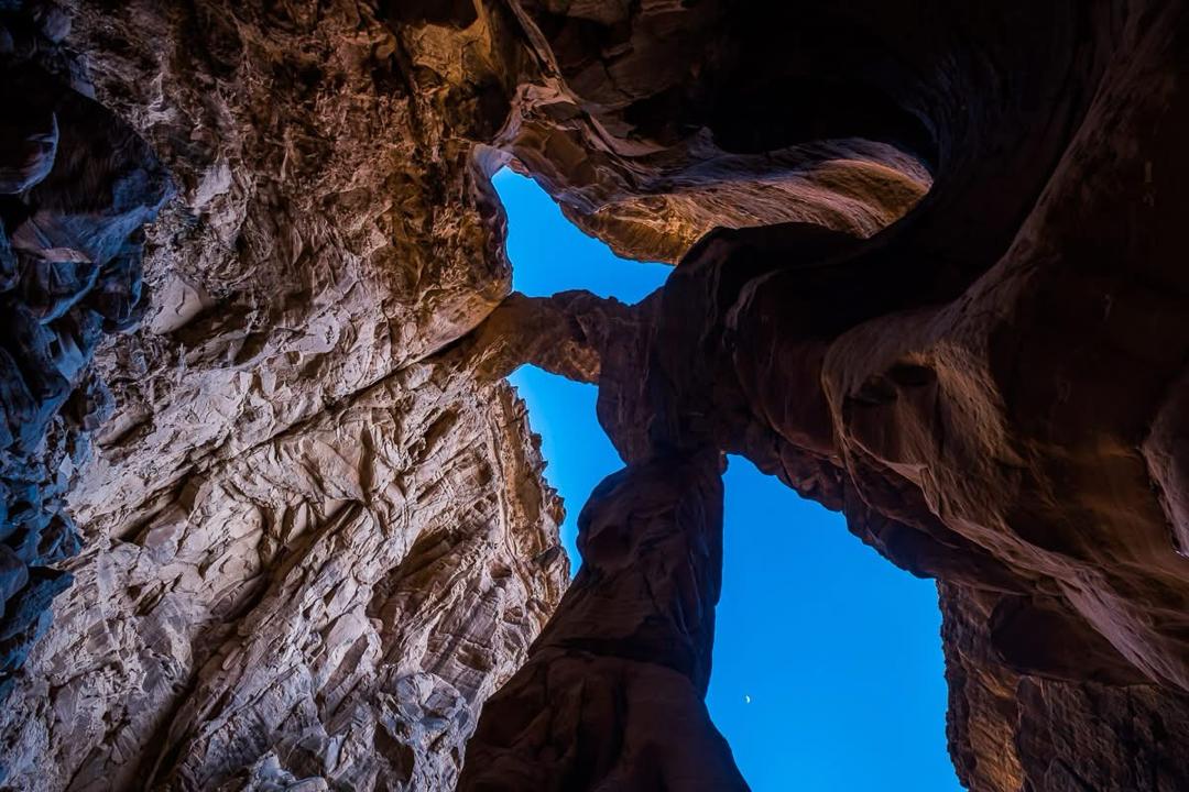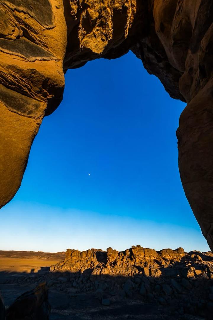 Lever du jour sous un ciel éclatant de lumière, l'aventure débute par la majestueuse arche de Tikobawen, une merveille naturelle sculptée par le temps, témoin silencieux des siècles passés. La journée se poursuit à travers les imposantes cathédrales de roches, ces tours de grès aux formes surréalistes, érigées comme des sentinelles au cœur du désert. Le chemin serpente ensuite entre les dunes, véritables océans de sable, où chaque pas nous emporte plus loin dans un monde de tranquillité absolue.