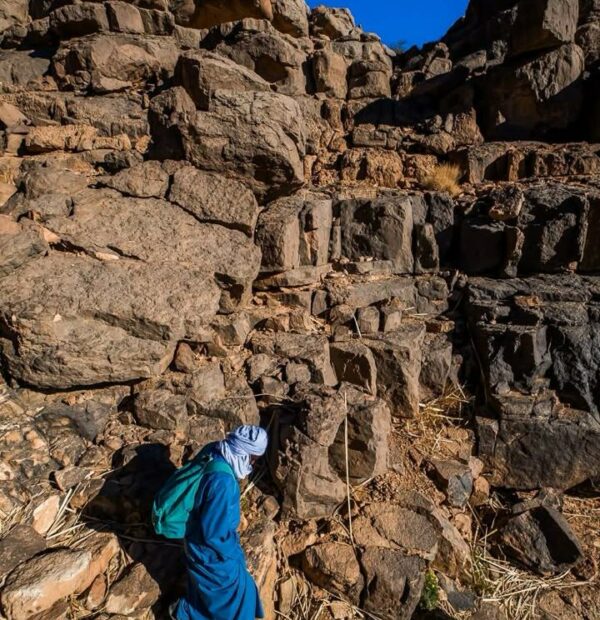 Art et Histoire du Tassili : Une rencontre émouvante avec les peuples préhistoriques à travers les sites de Tilalen et la célèbre gravure de la « Vache qui pleure », chef-d’œuvre de l’art rupestre néolithique.