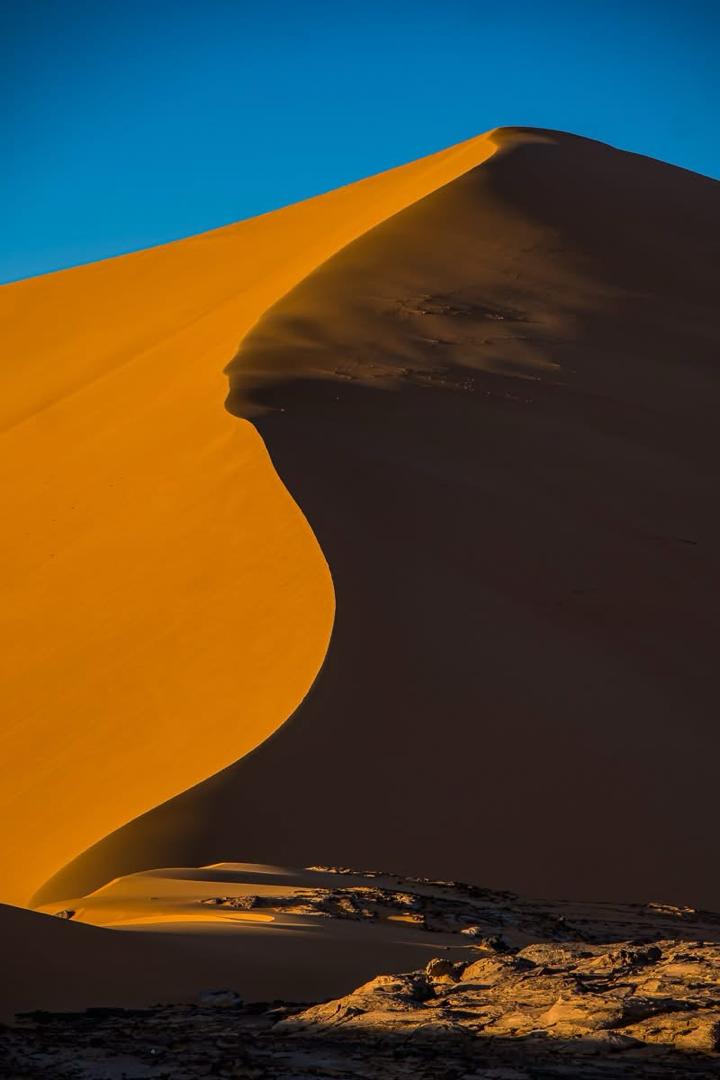 Notre périple nous mène à travers les gorges de gré, un labyrinthe de parois vertigineuses et de hautes dunes dont l'ascension offre un panorama sans fin sur l'immensité désertique.