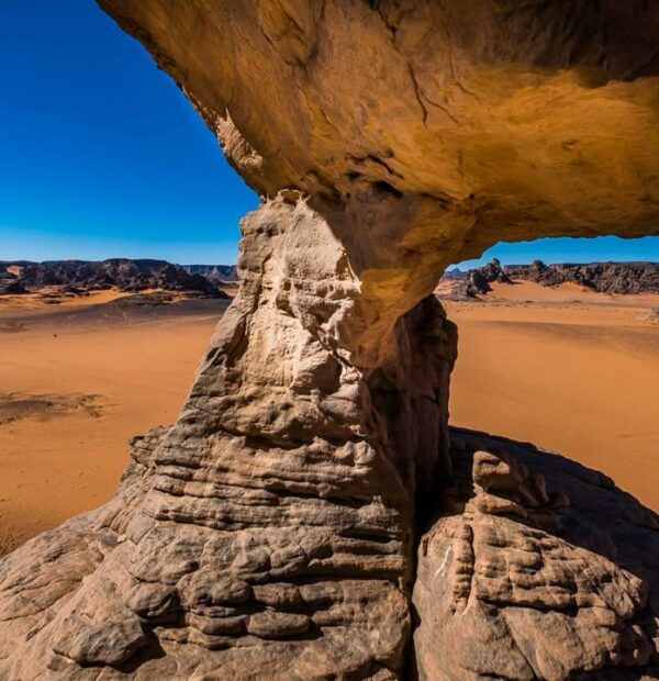 Ce périple de 5 jours au départ de Djanet vous plonge dans l’essence même du Sahara algérien. Conçu comme une immersion sensorielle, ce circuit vous fait traverser des paysages contrastés, où les cathédrales de grès s’effacent devant l’immensité des dunes blondes.